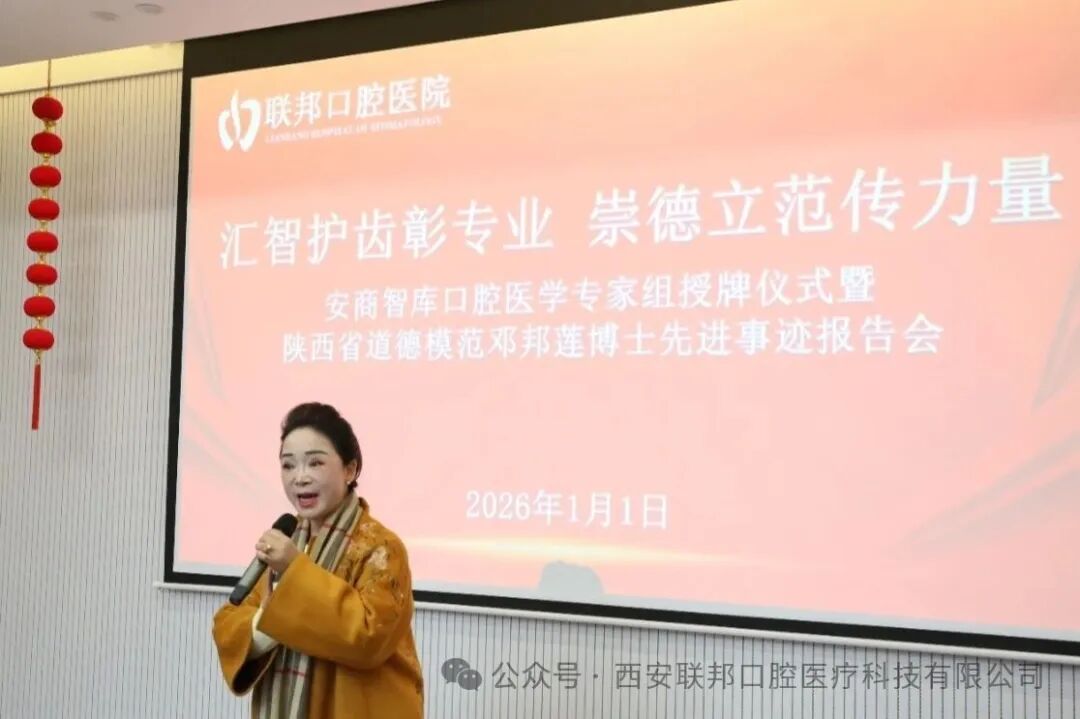2026年1月1日,安商智库口腔医学专家组授牌仪式暨陕西省道德模范邓邦莲博士先进事迹报告会在西安联邦口腔碑林医院隆重举行。本次活动由安商智库主办、西安联邦口腔医院承办,以“汇智护齿彰专业 崇德立范传力量”为主题,汇聚各行各业精英,共同见证口腔医学领域的智库赋能新实践,聆听道德模范的医者仁心故事。