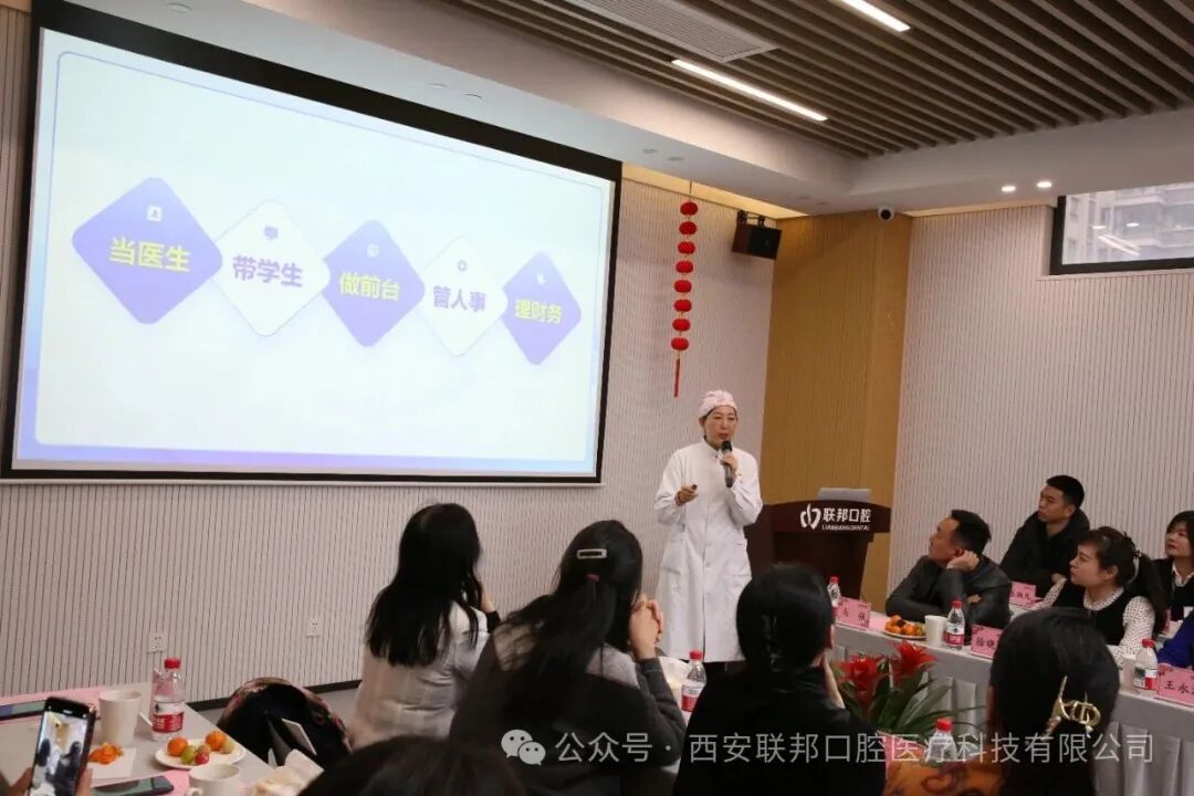 随后,全国三八红旗手、陕西省第八届道德模范邓邦莲院长以《传承延安精神 筑梦口腔健康》为题作主题分享。她深情回顾三十余载行医历程,从仅有3名员工、2台椅位的小诊所起步,发展成为拥有联邦口腔碑林医院、联邦口腔新城医院、联邦口腔行政中心医院、联邦口腔民乐园医院、联邦口腔技术研究院和联邦瑜伽馆六个法人单位,最终带领医院成长为行业标杆。同时,她讲述了为山西无牙患儿十年免费更换4次义齿、为330余名行动不便老人提供上门诊疗等暖心故事,分享了累计投入500万元设立爱心基金、开展6300余场公益活动的公益初心。邓院长还耐心解答参会者提出的口腔健康疑问,用通俗语言普及护牙知识,传递“夫医者,非仁爱不可托也”的职业感悟。